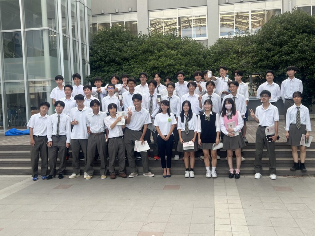 講演会では、卒業後、政治への挑戦と挫折を経て大阪市議会議員から参議院議員に至った経緯が語られました。また、政治に無関心でも政治に無関係ではいられないことをわかりやすく説明され、若者の政治参加の大切さを力説されました。さらに、人との出会い、本当に信頼できる仲間、感謝の気持ちを忘れずに歩んでいくことの大切さを、多感な十代を過ごす学生達へ熱心に伝えられました。講演終了後、「学びの庭」にて学生との集合写真が撮影され、本校初の国会議員が誕生したことを記念するとともに、若い世代のキャリアパスや生き方を考える上で重要な示唆に富んだ講演会となりました。